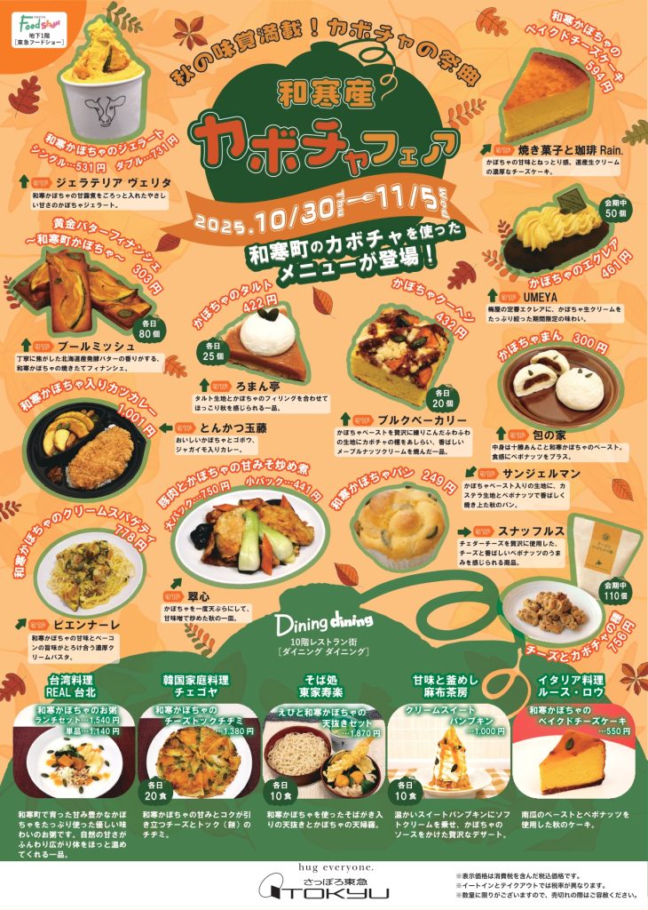 10月30日(木)から11月5日(水)の1週間、東急百貨店札幌店にて「和寒産カボチャフェア」を開催します!甘さも作付面積もトップクラスの和寒産のかぼちゃや、栄養満点のかぼちゃの種、「ぺポナッツ」を使用したメニューが店内18店舗で登場。かぼちゃのスイーツやカレーなど、様々な和寒産カボチャを味わえます。秋の味覚を堪能できる「和寒産カボチャフェア」は明日から開催します。ぜひ、足をお運びください!